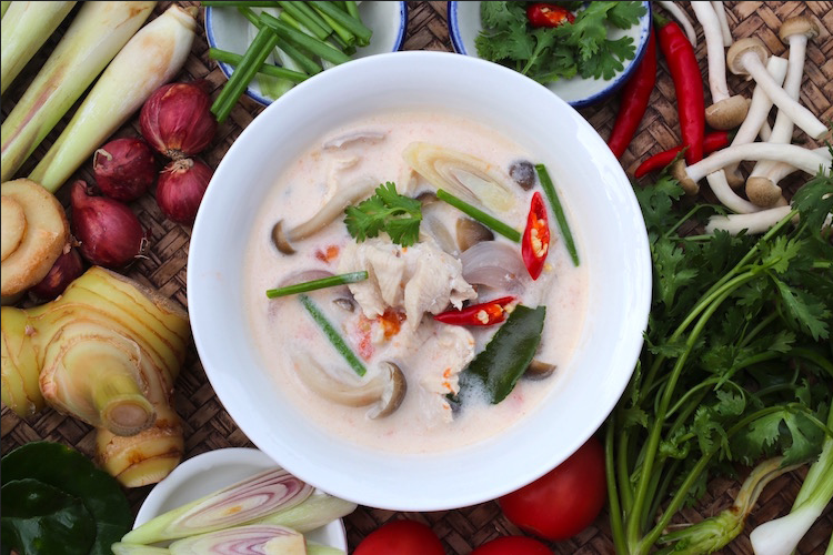 - Soup – Tom Yum (prawns or chicken), Tom Kha Gai, or Tom Jued (pork or chicken)